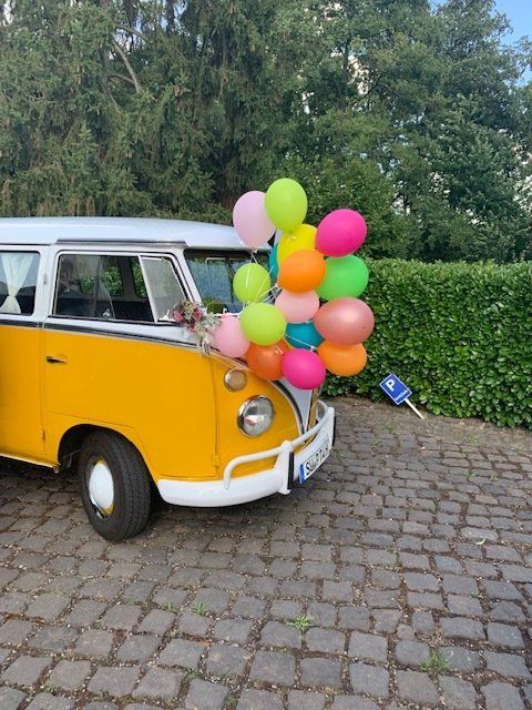 Deine Hochzeit und unser Bulli ist das perfekte Match. Wir fahren Euch sehr gerne.